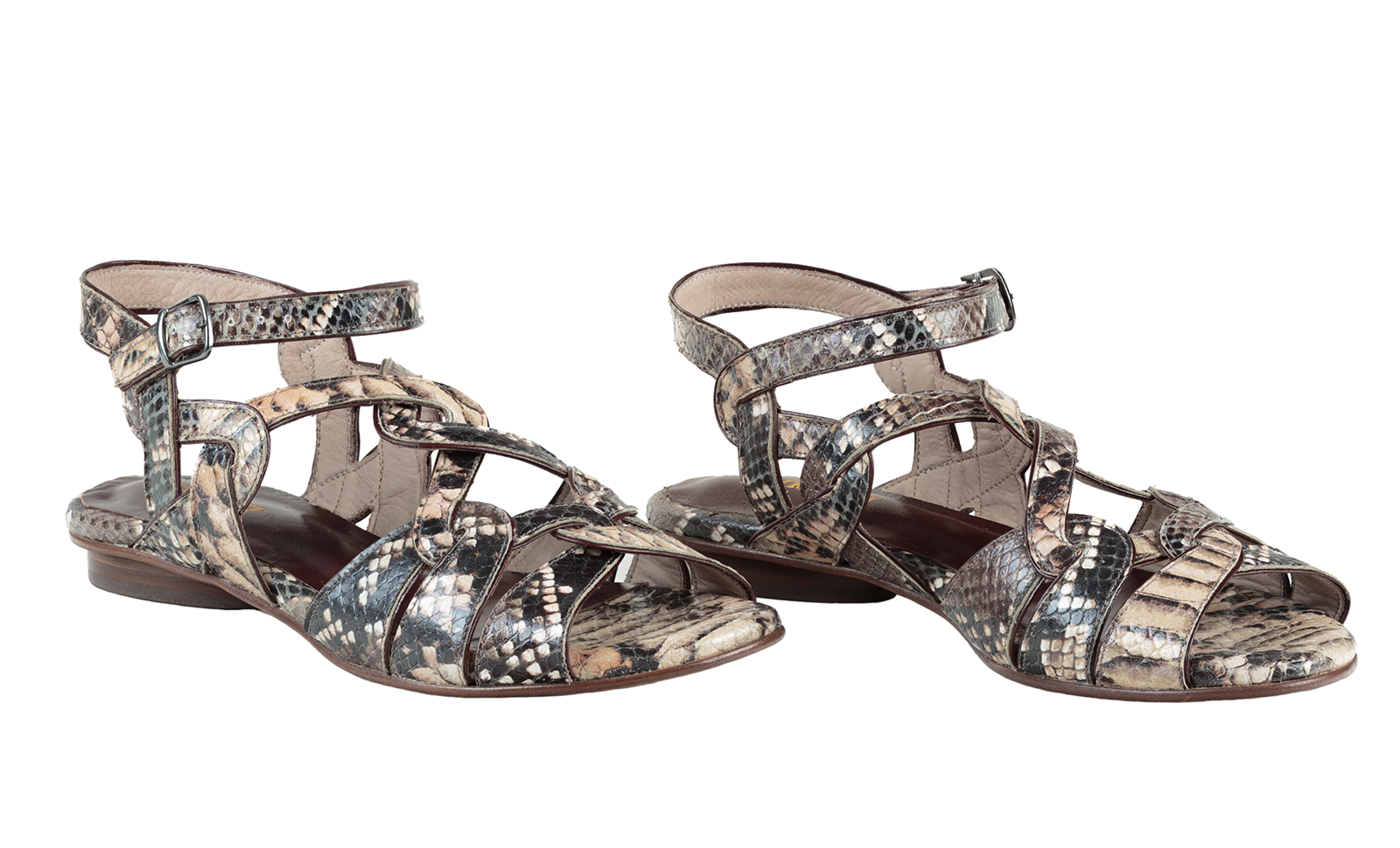 A Flat Comporta é a ideal para qualquer combinação. Com mistura de couro gravado em cobra e vivo marrom, seu estilo versátil e confortável é perfeito para toda mulher. Tira com fivela para melhor conforto e ajuste.
